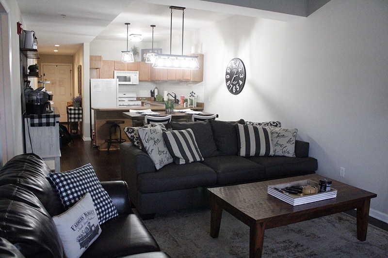 Just over 1,000 square feet this 2 bed/2 bath condo is part of the Appleview River Resort and sleeps 6 people comfortably. This newly updated condo boasts a Modern Farmhouse style with a splash of Industrial. Our favorite part of the condo is the fully stocked coffee bar, with hot chocolate, tea, coffees and creamers. The best place to kick back and relax after a long day of exploring is the large balcony overlooking the serene Little Pigeon River. With the mountains off in the distance, it’s one of the few places in the area where you can enjoy both mountain and river views.